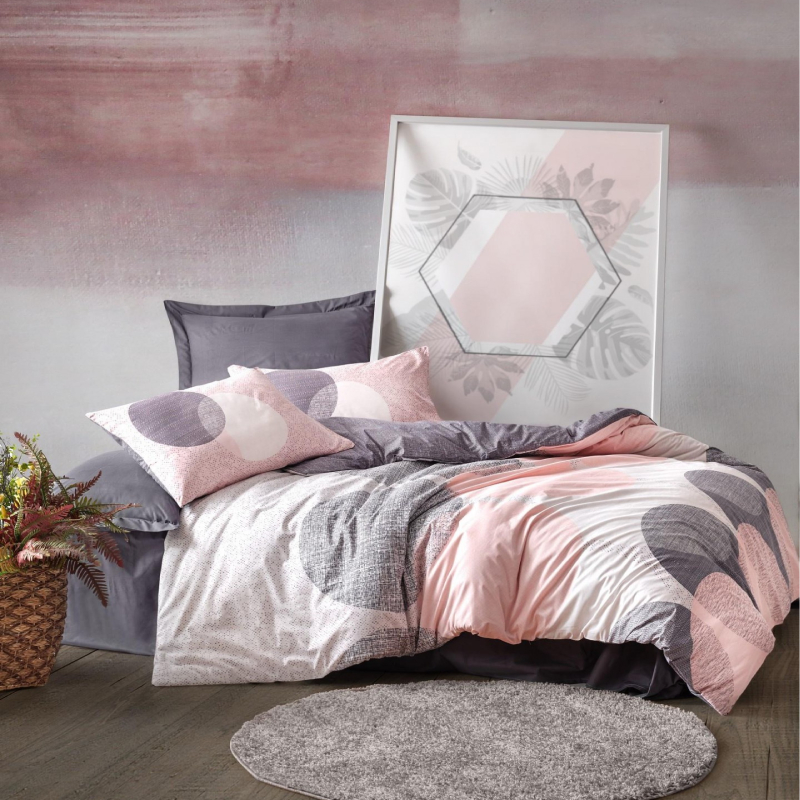 Комплектът Loren се поддържа изключително лесно - просто го изперете на 30°C в обърнато положение, за да съхраните цветовете и формата. Не се препоръчва използването на избелващи препарати. Памукът е естествен материал, който не задържа алергени и е подходящ за чувствителна кожа. Дизайнът на комплекта Loren съчетава изчистена естетика и практичност, което го прави подходящ за всякакъв тип интериор - от минималистични спални до класически обзаведени помещения. Цветовете и десените са внимателно подбрани, така че да създават усещане за спокойствие и уют, без да доминират визуално в стаята.