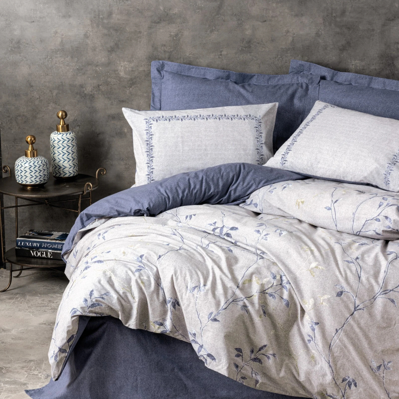 Комплектът Nitsa се поддържа изключително лесно - просто го изперете на 30°C в обърнато положение, за да съхраните цветовете и формата. Не се препоръчва използването на избелващи препарати. Памукът е естествен материал, който не задържа алергени и е подходящ за чувствителна кожа. Дизайнът на комплекта Nitsa съчетава изчистена естетика и практичност, което го прави подходящ за всякакъв тип интериор - от минималистични спални до класически обзаведени помещения. Цветовете и десените са внимателно подбрани, така че да създават усещане за спокойствие и уют, без да доминират визуално в стаята.