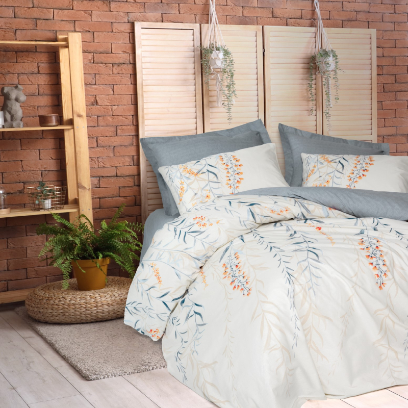 Комплектът Hiedra се поддържа изключително лесно - просто го изперете на 30°C в обърнато положение, за да съхраните цветовете и формата. Не се препоръчва използването на избелващи препарати. Памукът е естествен материал, който не задържа алергени и е подходящ за чувствителна кожа. Дизайнът на комплекта Hiedra съчетава изчистена естетика и практичност, което го прави подходящ за всякакъв тип интериор - от минималистични спални до класически обзаведени помещения. Цветовете и десените са внимателно подбрани, така че да създават усещане за спокойствие и уют, без да доминират визуално в стаята.