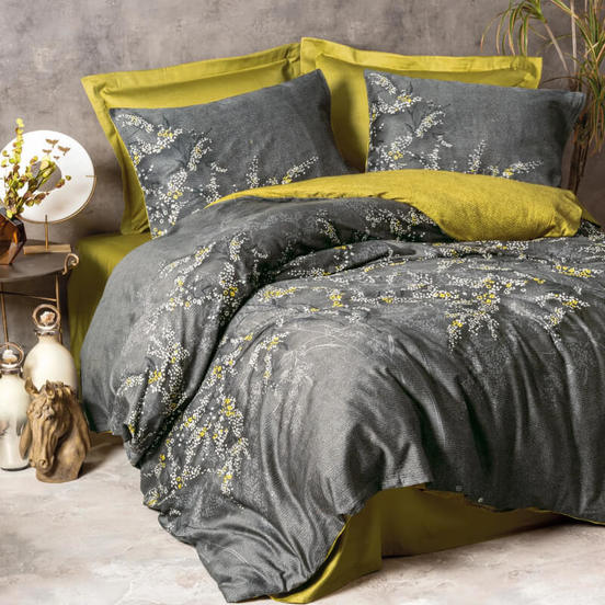 Сатенът е тъкан, която се отличава с невероятна мекота, лек блясък и нежно усещане върху кожата. Благодарение на финия си тъкачен процес, той осигурява отлично проветрение и регулира температурата на тялото, като създава усещане за лукс през цялата нощ. Подходящ е за всички сезони.