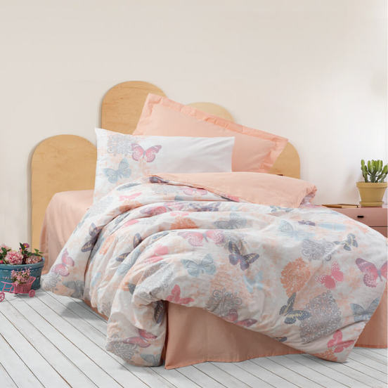 Добавете свежест, мекота и естествен комфорт към спалнята с спалния комплект Kimela - стилно и практично решение за всекидневна употреба. Изработен от висококачествен ранфорс (100% памук), този единичен комплект съчетава здравина, нежна текстура и устойчивост при пране. Идеален е за ползване както у дома, така и в къщи за гости, ученически стаи или общежития.