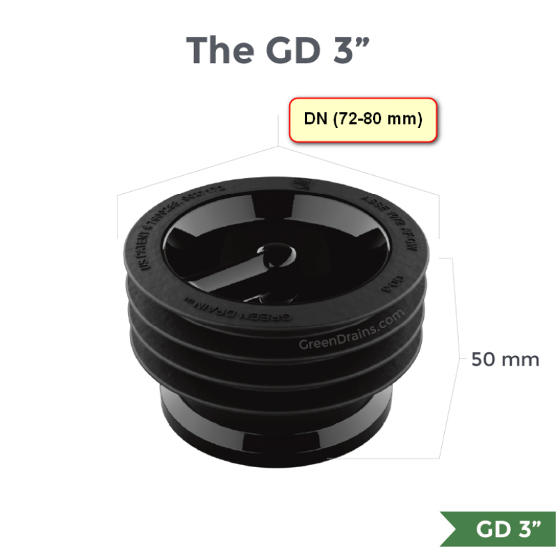 Green Drain™ GD3 е интелигентно решение за защита на канализационните системи, проектирано с мисъл за здравето, хигиената и безопасността. Този универсален мембранен клапан се инсталира директно в сифона и благодарение на специалната си конструкция позволява свободно оттичане на вода, като едновременно блокира връщането на неприятни миризми, газове, насекоми и други вредители обратно в помещението. Съвместим с отвори с диаметър 72-80 мм, той е отличен избор за бани, кухни, мазета, санитарни помещения, търговски обекти и индустриални зони.