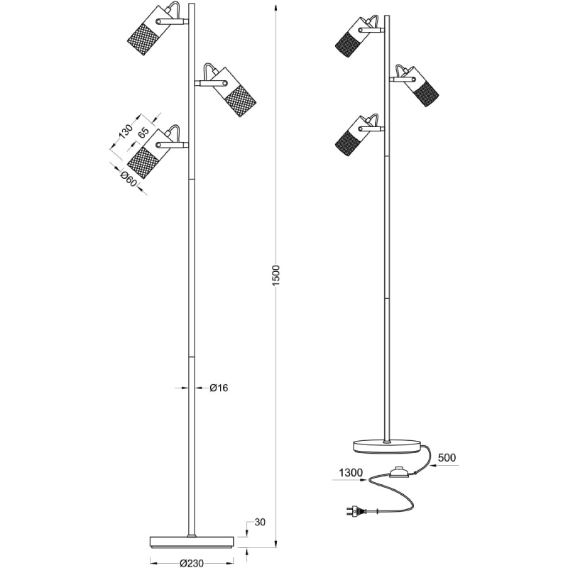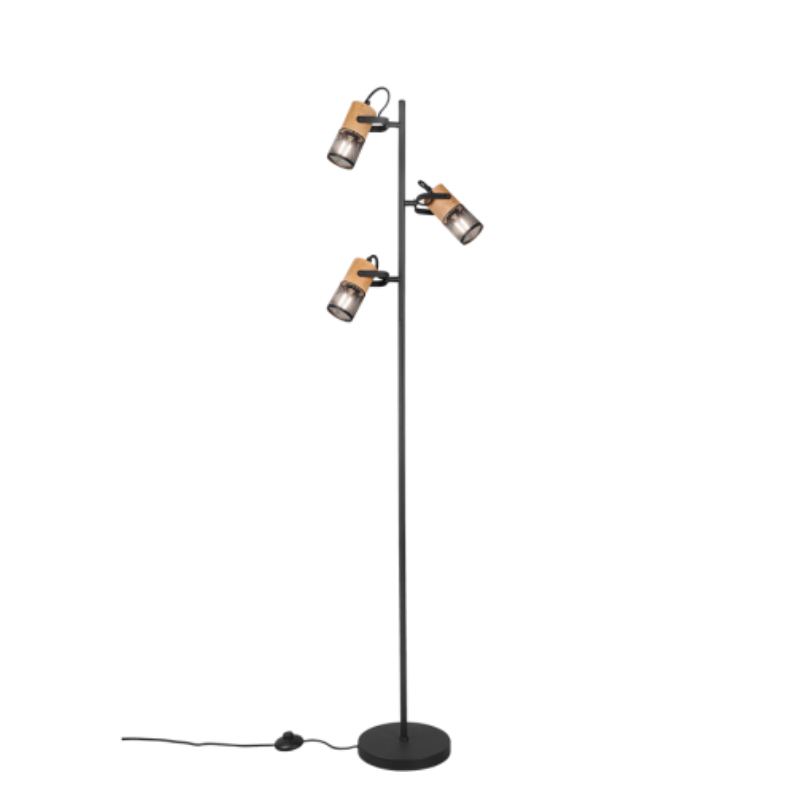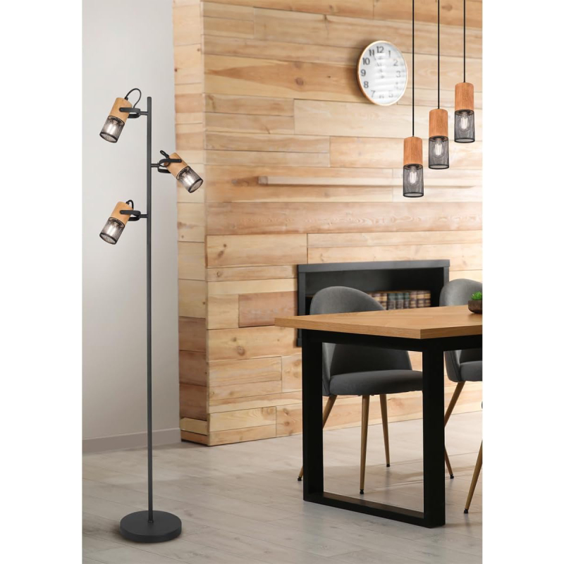 Добавете индустриален чар към вашия интериор с подовата лампа Manon. Изработена от черна стомана и естествено дърво, тя комбинира стил и функционалност. Благодарение на регулируемите мрежести абажури, можете лесно да насочите светлината по желание - идеална за всекидневна, офис или трапезария.