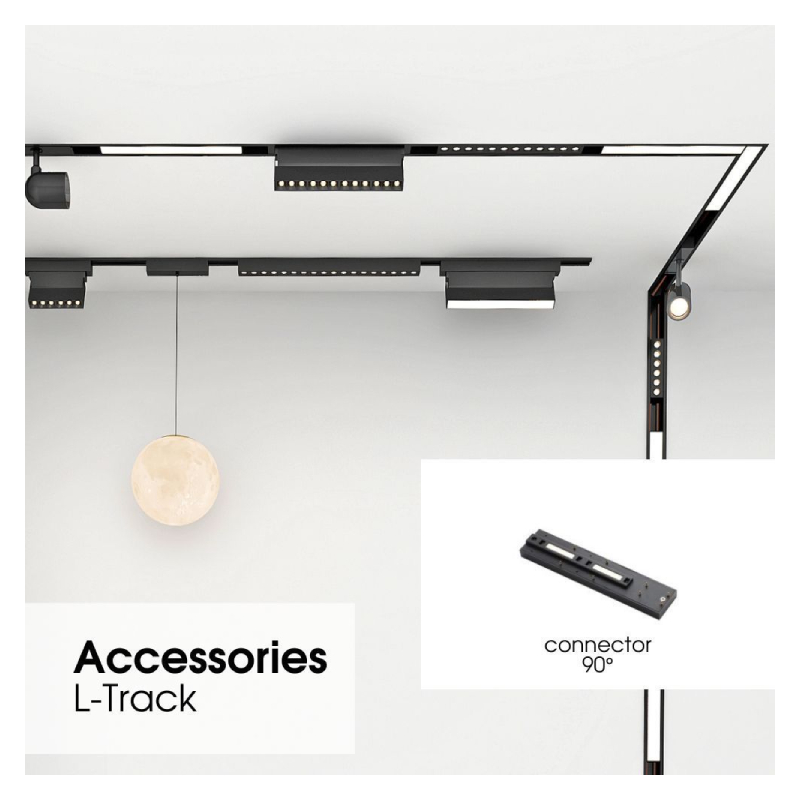 Електрическият конектор SLIM25 L-Track (90°) е предназначен за създаване на ъглови връзки в нисковолтовата магнитна релсова система SLIM25 на VIVALUX. Позволява елегантно и функционално съединяване на две релси под прав ъгъл, като същевременно осигурява електрическа проводимост между тях.