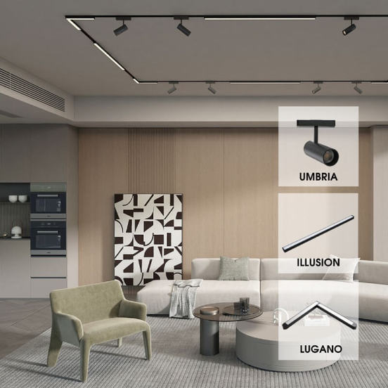 ILLUSION LED 24 W от серията SLIM25 е елегантно магнитно осветително тяло, предназначено за 48 V релсови системи. С дължина 580 мм и мощност 24 W, то осигурява ярко и равномерно осветление (1200 lm) с неутрална светлина (4000 K), което създава комфортна атмосфера в жилищни и търговски помещения. Идеално решение за модерни интериори с изисквания към естетика и функционалност.
