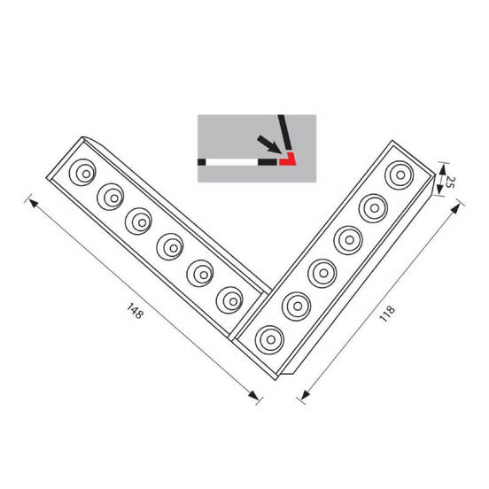 LEMINI LED 12 W е елегантно L-образно магнитно LED осветително тяло от серията SLIM25, проектирано за 48 V релсови системи. С компактна форма и насочен светлинен поток, то е идеално за монтаж в ъгли, придавайки акцентно осветление с неутрална светлина (4000 K).