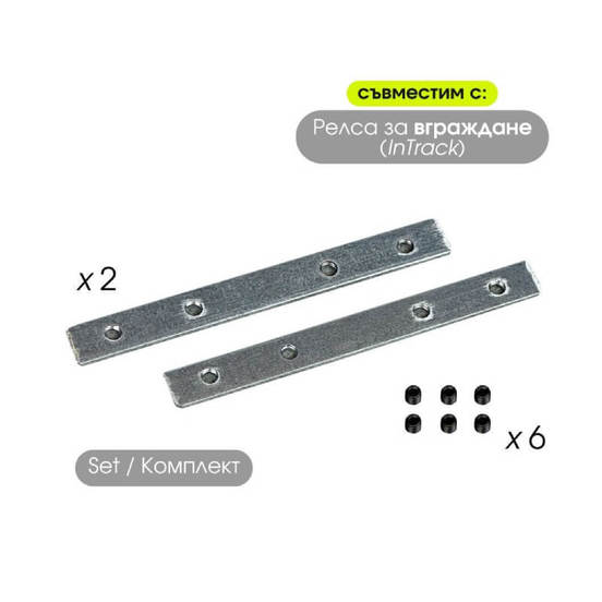 - Тип монтаж: за фиксиране на релси от типа InTrack или SlimTrack