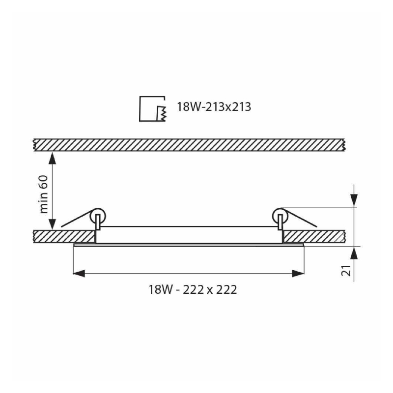 - Монтажен отвор: 213 x 213 мм
