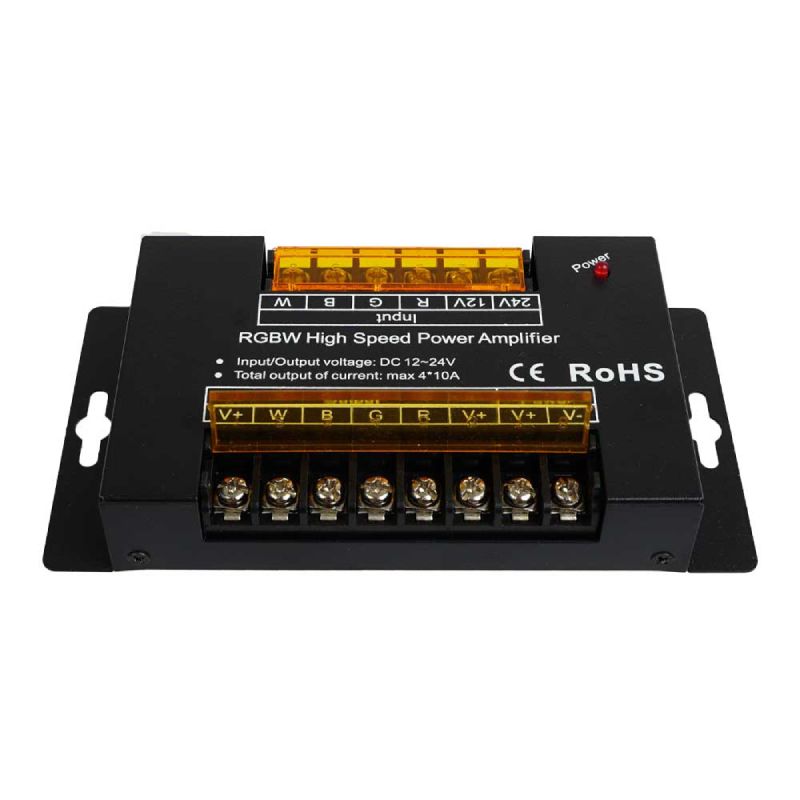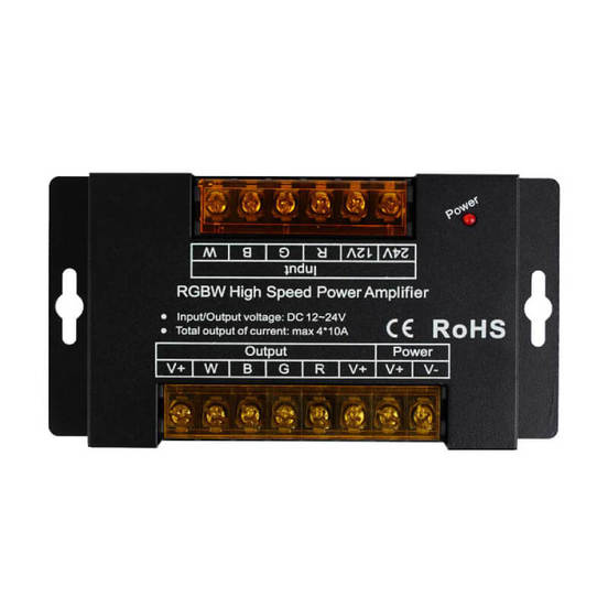 Усилвателят за RGBW LED ленти на Lightex е предназначен за разширяване на обхвата и мощността на LED инсталации, като запазва синхрон на цветовете и ефектите. Идеален за големи проекти с дълги RGBW ленти, където се изисква стабилно и надеждно захранване.
