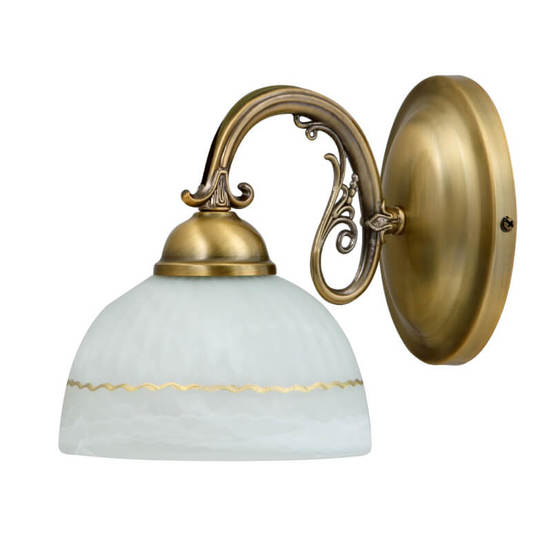Апликът FLOSSI от RABALUX впечатлява с класически дизайн и качествени материали. Комбинацията от бронзово метално тяло и бял стъклен абажур го прави отлично допълнение към интериори в ретро, винтидж или класически стил. Идеален за спални, дневни, коридори и зони за четене.