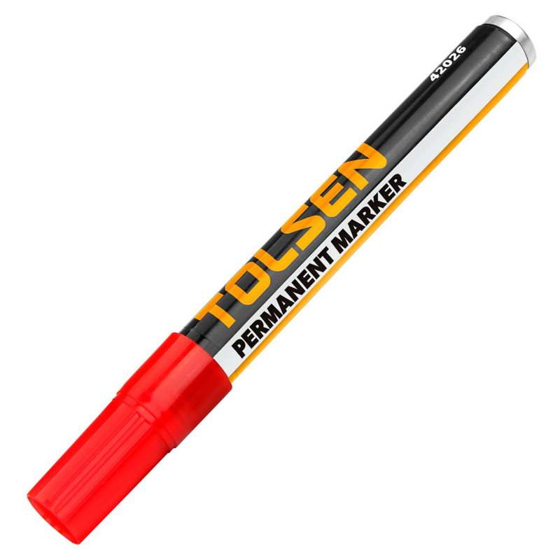Маркерът TOLSEN TLS42026 е висококачествен, индустриален инструмент, проектиран за ясно и трайно маркиране върху разнообразни повърхности. Благодарение на специалната си маслена формула с бързо съхнене, маркерът осигурява отлична адхезия и дълготраен цвят, устойчив на избледняване, вода и UV лъчи. Това го прави изключително подходящ за професионална употреба в строителството, автосервизи, индустрията и домакинството.
