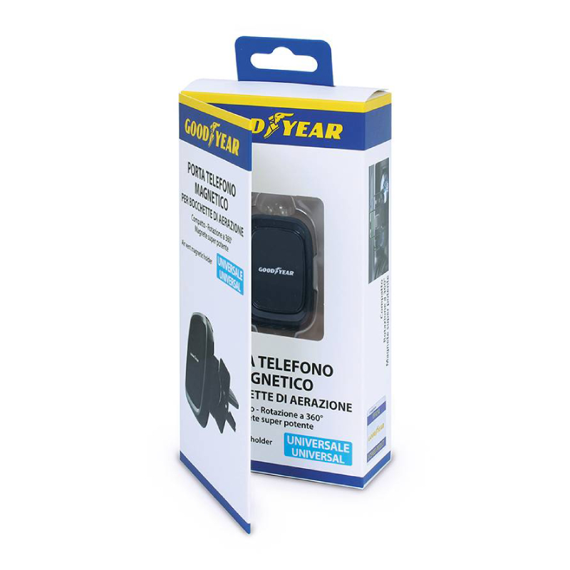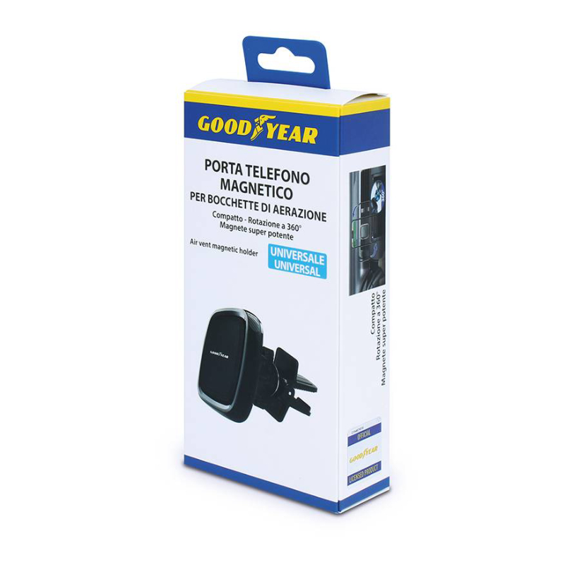 Държачът за телефон към въздуховод Goodyear е интелигентно решение за водачите, които търсят удобство, сигурност и бърз достъп до своя смартфон по време на път. Със своя компактен и стилен дизайн, той се монтира директно върху вентилационните отвори на автомобила - както вертикални, така и хоризонтални - без да ограничава видимостта към пътя. Благодарение на двата включени магнитни адаптера, държачът е съвместим с почти всички модели смартфони и предлага стабилно и сигурно захващане дори при резки маневри, неравни терени или внезапно спиране.