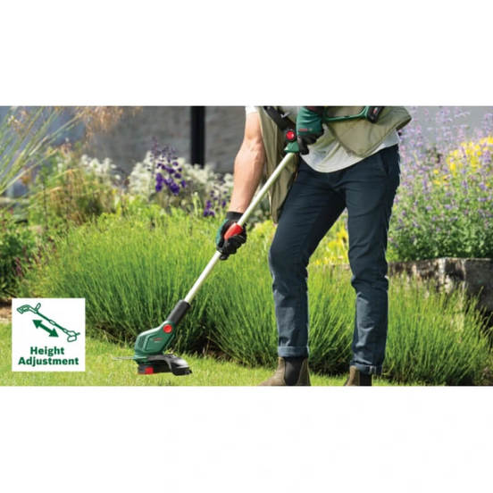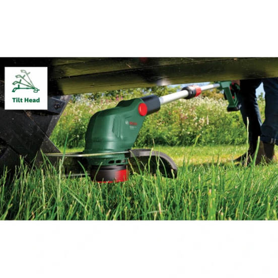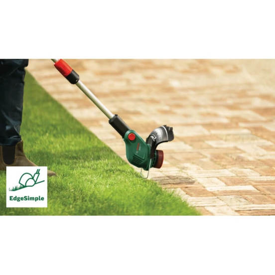Bosch UniversalGrassCut 18V-26-500 е ефективен и лесен за използване акумулаторен тример, създаден за поддръжка на тревни площи и ръбове в градината. Благодарение на ергономичния си дизайн и леката конструкция, той осигурява комфортна работа дори при продължителна употреба. Моделът се отличава със специална функция EdgeSimple, която улеснява косенето покрай ръбове само с едно завъртане на дръжката, както и с възможност за накланяне на главата за достъп до труднодостъпни зони под пейки или храсти.