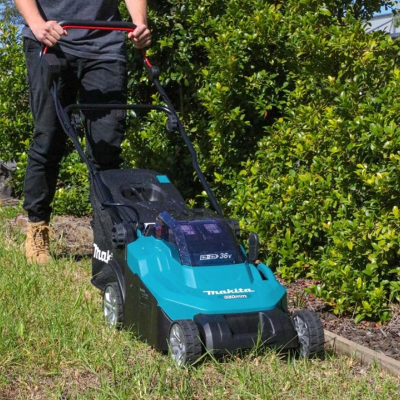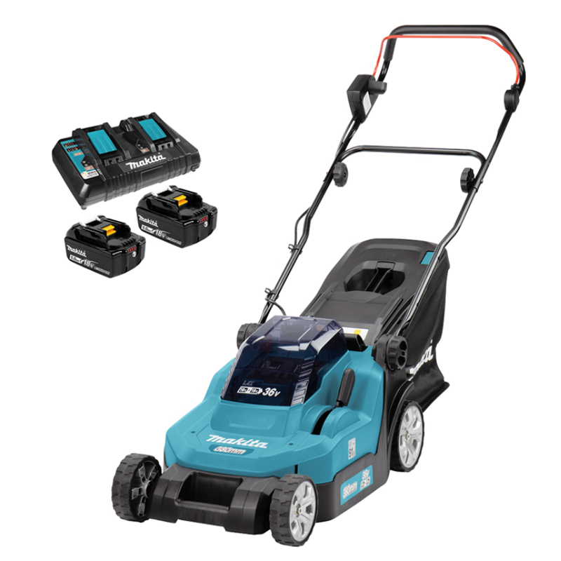 Акумулаторната косачка Makita DLM382PT2 е създадена за градинари, които търсят мощна, надеждна и лесна за употреба машина за поддръжка на средни и по-големи тревни площи. Захранвана от две батерии с общо напрежение 36 V, тя осигурява достатъчно енергия за дълга и ефективна работа без необходимост от кабели и източници на ток. Благодарение на безчетковия си двигател, косачката работи тихо и с висока производителност, като същевременно намалява износването и поддръжката.