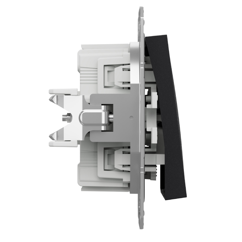 Междинен (кръстат) ключ от серията Asfora - в модерен антрацитен цвят, с безвинтов монтаж и издръжлив ABS корпус. Практично и стилно решение за многоточково управление на осветлението.