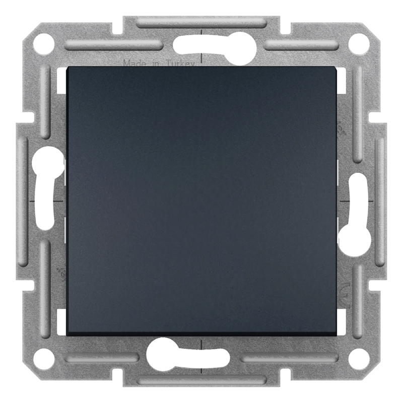 Еднополюсен бутон Asfora в антрацитен цвят - стилно и надеждно решение за управление на осветление, звънци или сигнализация. С повдигащи клеми за лесен и сигурен монтаж.