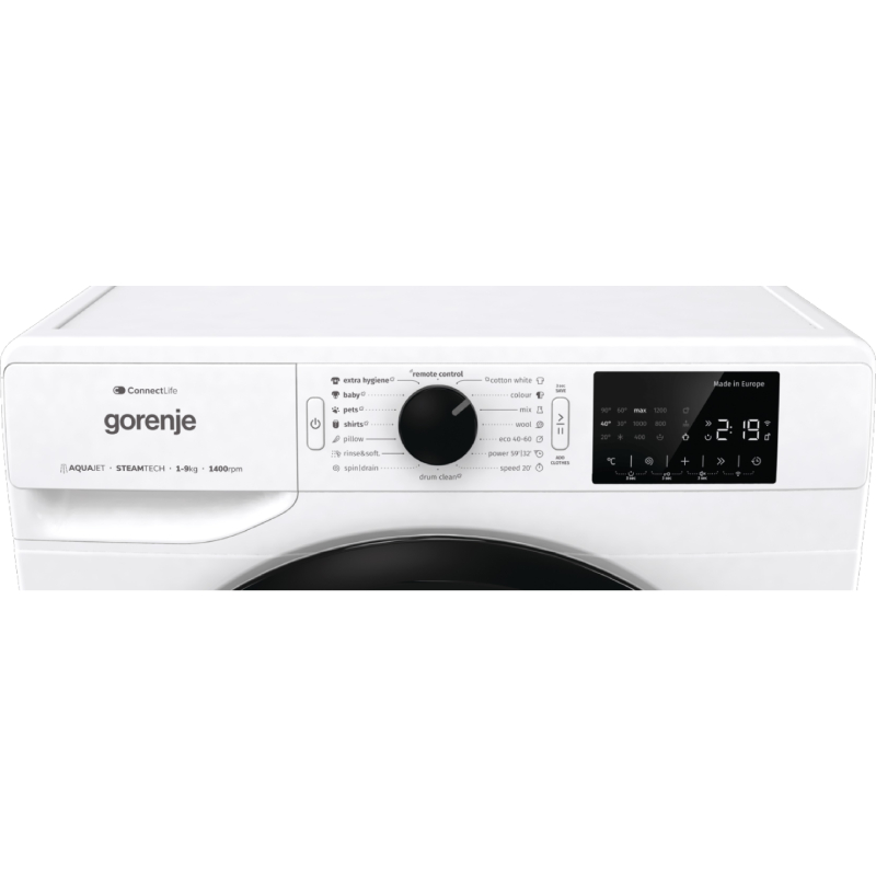 Пералнята Gorenje WPNEI94A1SWIFI съчетава висока енергийна ефективност, интелигентно управление и модерни технологии за перфектни резултати при всяко пране. С капацитет от 9 кг и максимална скорост на центрофуга 1400 об/мин, тя е подходяща за големи домакинства или за хора, които ценят удобството да перат повече дрехи наведнъж. Инверторният PowerDrive мотор осигурява по-тиха работа, по-дълъг живот на уреда и оптимална консумация на енергия. Благодарение на Wi-Fi управлението и приложението ConnectLife, можете да контролирате пералнята дистанционно, да следите цикъла на пране и да получавате препоръки за програми според вида и замърсяването на дрехите.