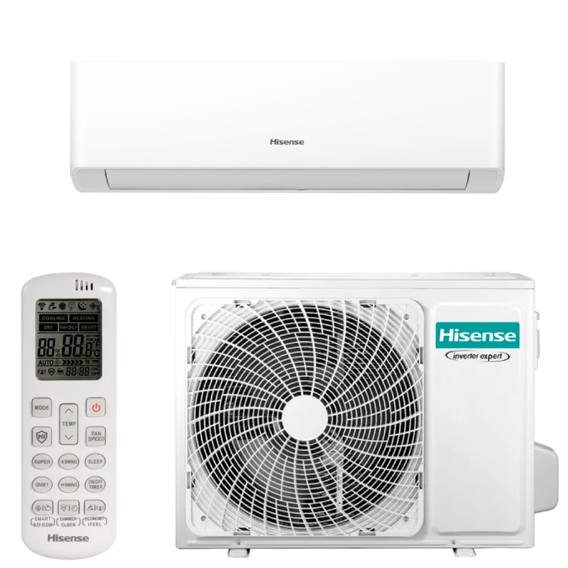 Hisense Energy SE KA50BS0E е инверторен климатик, проектиран за ефективно отопление и охлаждане на дома, като осигурява комфорт в помещения до 28 м². С мощност 18000 BTU (5.0 kW охлаждане / 5.4 kW отопление) и енергийни класове A++ за охлаждане и отопление, той гарантира ниска консумация на енергия и висок комфорт. Климатикът използва Full DC инверторна технология за плавно регулиране на температурата, тих режим на работа и възможност за работа при екстремни температури: -22°C до +24°C за отопление и -15°C до +43°C за охлаждане. Вградената система Outdoor Chassis Heater предотвратява замръзване на външното тяло при ниски температури и висока влажност.