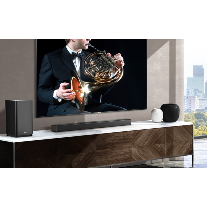 Системата предлага множество опции за свързване, включително eARC, HDMI in/out, оптичен вход, USB 2.0 и Bluetooth 4.2, което позволява лесно възпроизвеждане на музика от различни устройства. Компактният дизайн на саундбара и субуфера позволява лесен монтаж на стена или поставяне на мебели, като се вписва стилно във всеки интериор. С Hisense HS312 получавате пълно аудио изживяване с контрол от дистанционно и поддръжка на популярни аудио формати като FLAC, WAV и WMA.