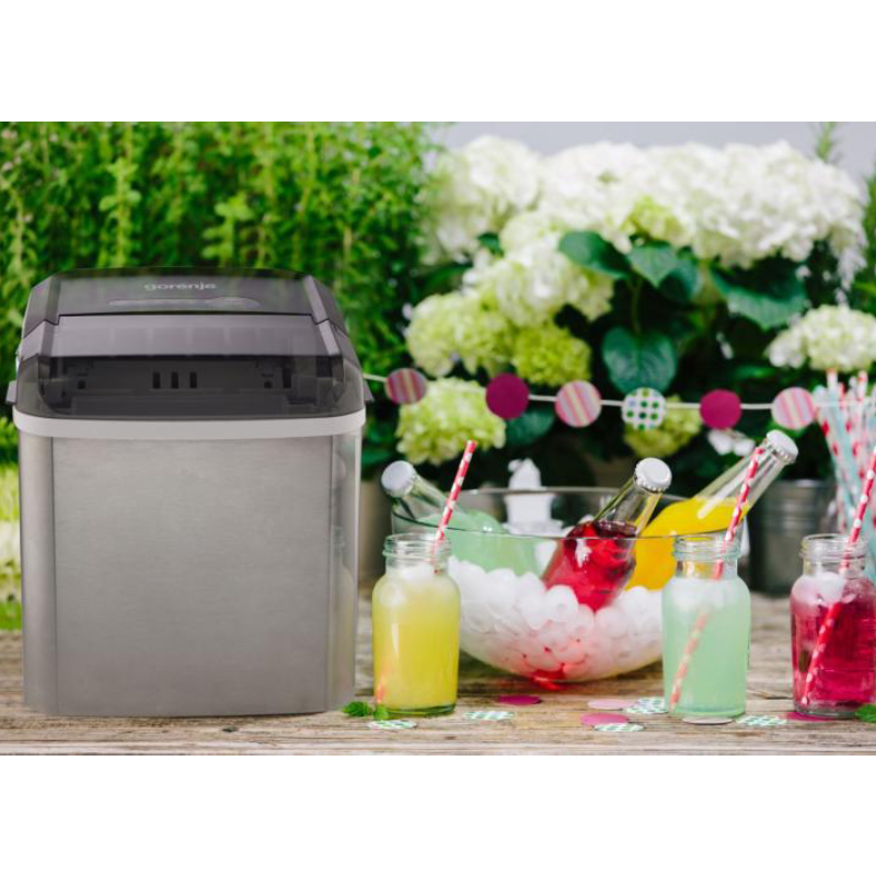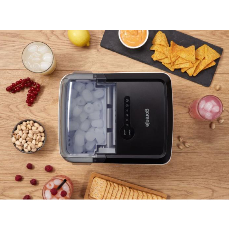 Ледогенераторът GORENJE IMD1200SB е перфектното решение за всички, които искат винаги да имат свеж лед под ръка. С възможност за производство на до 12 кг лед на ден, този компактен и мобилен уред позволява бързо и удобно приготвяне на ледни кубчета в дома, офиса или дори на къмпинг. Независимо дали планирате парти, пикник или просто искате студени напитки през горещите дни, ледогенераторът гарантира, че ледът никога няма да свърши.