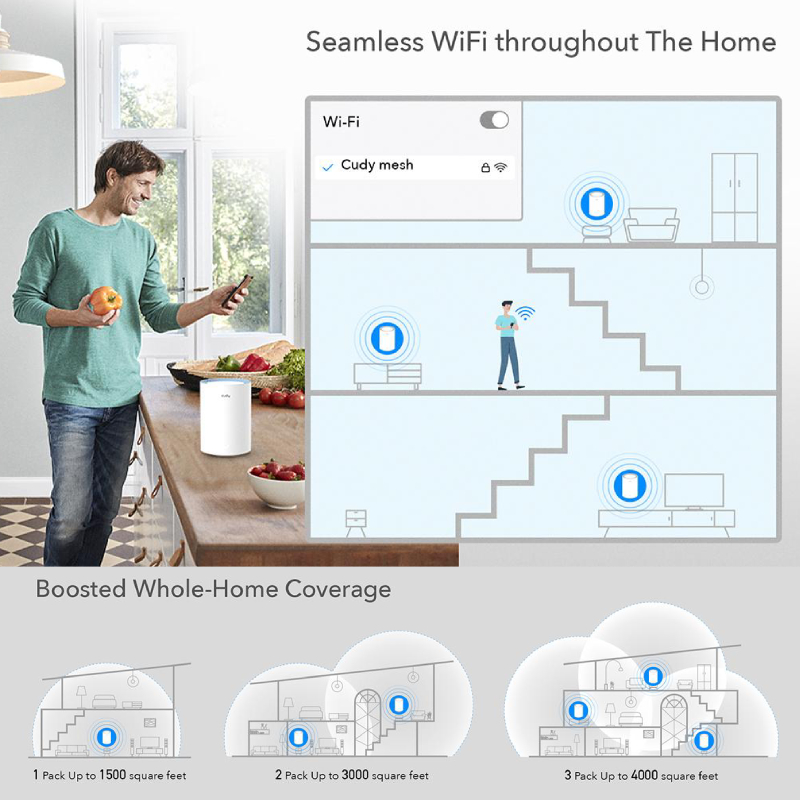В днешно време надеждната и бърза интернет връзка е от съществено значение за всеки дом и офис. Системата Cudy M1200 3-Pack представлява иновативно решение за разширяване и оптимизиране на безжичния сигнал чрез технологията Mesh. Тази двулентова система работи едновременно на честоти 2.4 GHz и 5 GHz, което гарантира висока скорост и стабилна връзка в обхват до 500 кв.м. Без значение дали използвате множество устройства за работа, учене или забавление, Cudy M1200 осигурява гладко и безпроблемно интернет изживяване навсякъде в дома ви.