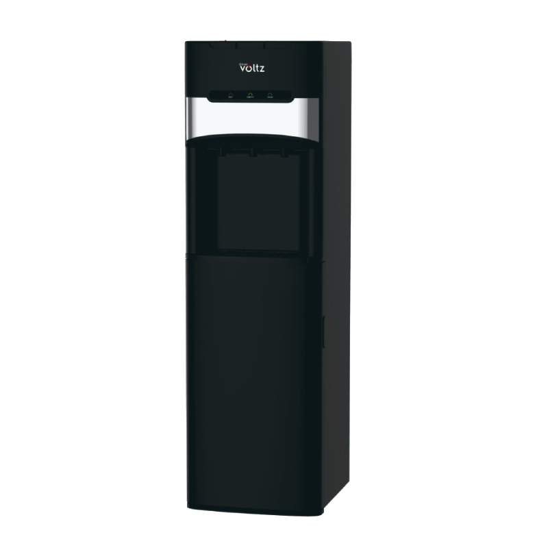 Уредът е проектиран с удобна система за долно зареждане на бутилката, което елиминира необходимостта от повдигане и улеснява подмяната ѝ. Вградената предпазна ключалка за деца предотвратява случайно пускане на гореща вода, осигурявайки безопасност за цялото семейство. Диспенсърът се отличава със стилен черен дизайн с декоративни елементи от неръждаема стомана, което го прави не само функционален, но и естетически подходящ за всяко помещение.