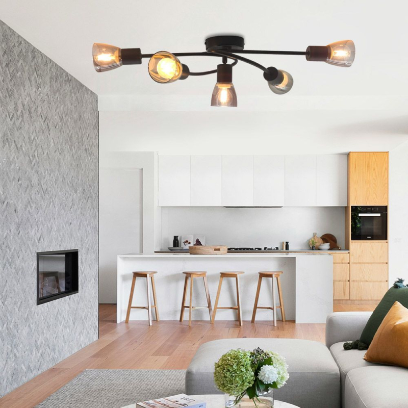 Плафонът DANTE комбинира изчистен дизайн с елегантни опушени стъклени абажури, които създават мека и уютна светлина. Металният корпус в черен цвят придава модерен и стилен акцент, който лесно се вписва в различни интериорни решения. Благодарение на компактната си кръгла форма, моделът е подходящ както за по-малки, така и за средно големи помещения.