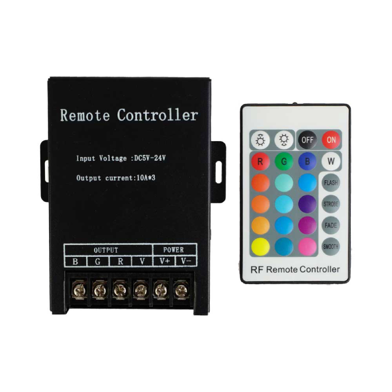 Осигурете пълен контрол върху цветовете и ефектите на вашата RGB LED лента с този мощен радиочестотен контролер. Благодарение на RF технологията, управлението е възможно от голямо разстояние и без пряка видимост между дистанционното и контролера - идеално за скрити инсталации или трудно достъпни места.