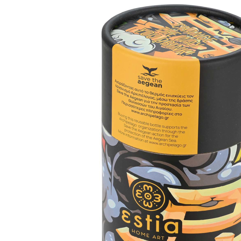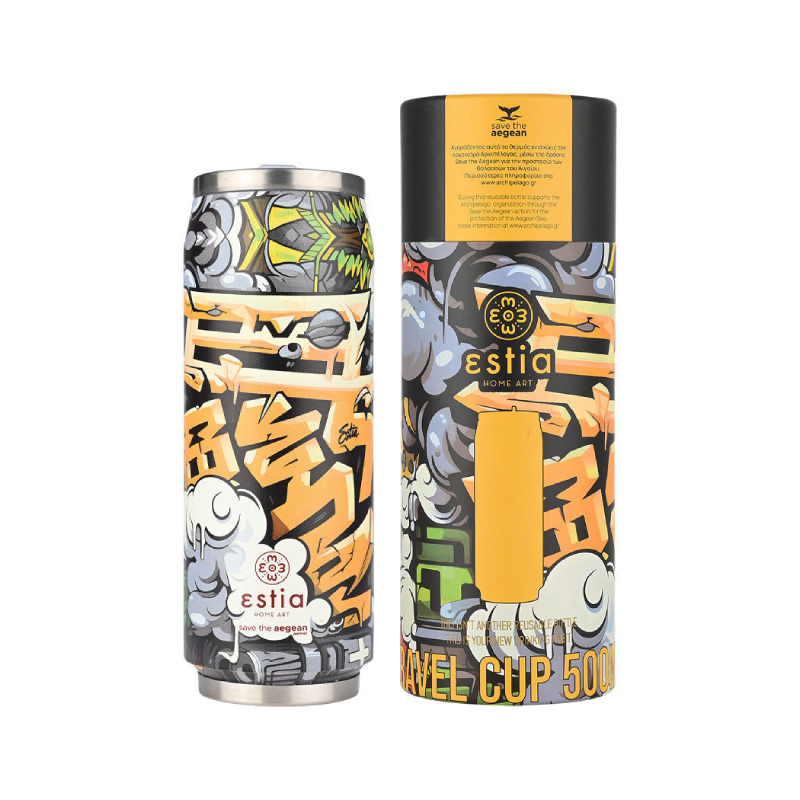 Термо кенчето Save the Aegean ESTIA подходящо за всяка напитка - кафе, чай или вода, е идеалният спътник навсякъде, където отиваш. Изработено от висококачествена неръждаема стомана 18/8, с двойни стени и вакуумна изолация, то запазва напитките топли до 6 часа и студени до 12 часа, като външната стена остава хладна на допир и без конденз. Херметическото капаче с подсилена сгъваема сламка гарантира, че няма течове, а широкият отвор улеснява наливането и почистването на чашата. Практичната четчица за сламката и праховото покритие, устойчиво на надраскване, правят термокенчето удобно и дълготрайно за ежедневна употреба.