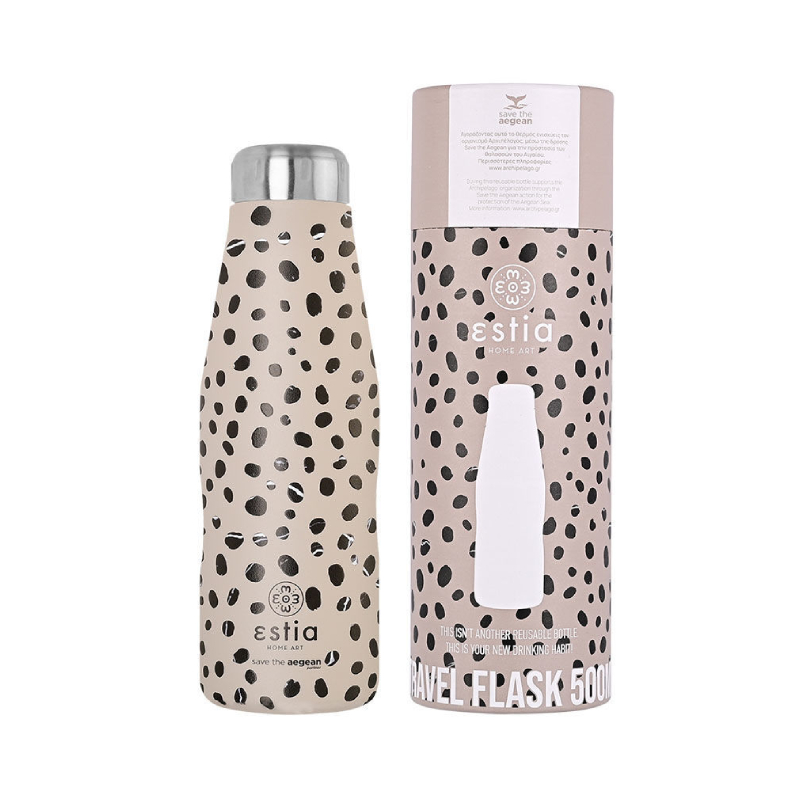 Туристическата термо бутилка "Save the Aegean" ESTIA е създадена за хора с активен начин на живот, които ценят удобството и стилния дизайн. С компактни размери и ергономични извивки, бутилката се държи лесно и удобно, като същевременно добавя елегантен акцент към всеки комплект за пътуване, спорт или офис. Изработена е от висококачествена неръждаема стомана 18/8 както отвътре, така и отвън, което гарантира, че напитките запазват естествения си вкус и аромат без нежелани миризми или реакции с материала.