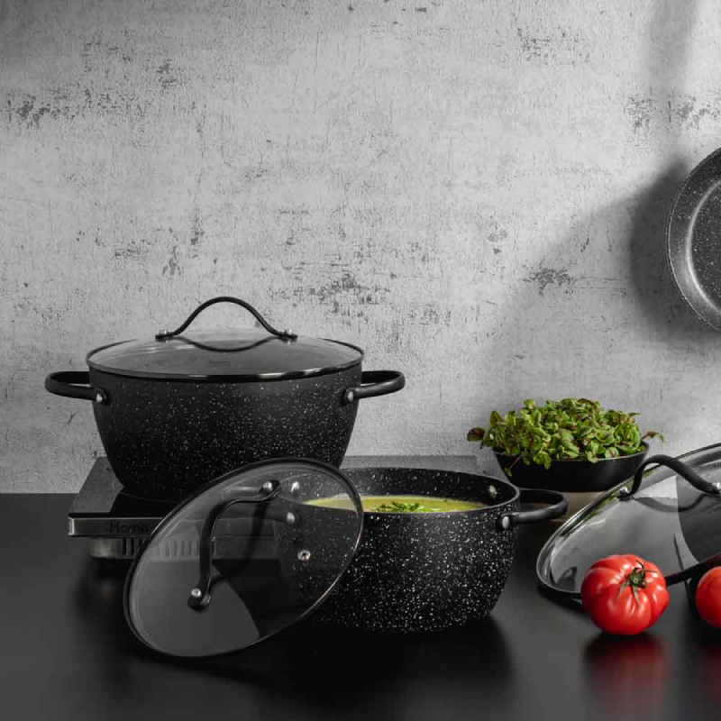 Придайте изисканост и удобство на своята кухня с тенджера LUIGI FERRERO Symphony. Изработена от висококачествени материали, тя съчетава елегантен дизайн с практичност, като осигурява равномерно нагряване и перфектни резултати при готвене. Перфектен избор за ежедневното приготвяне на супи, сосове, зеленчуци и ястия за цялото семейство. Подходяща както за бързи ястия, така и за бавно готвене.