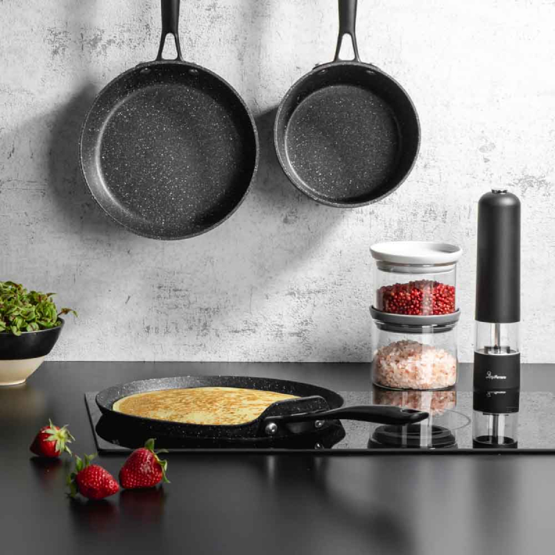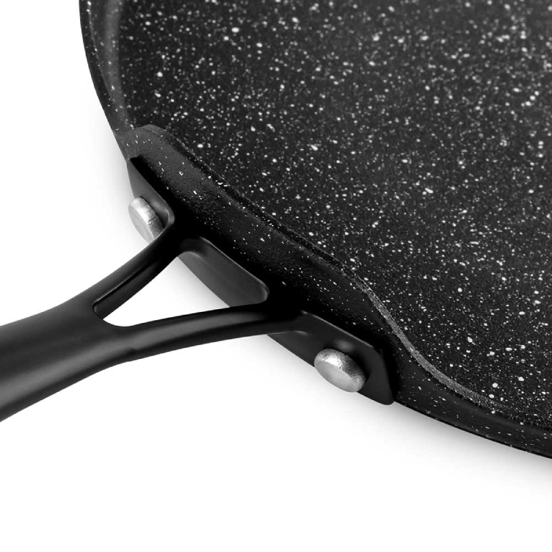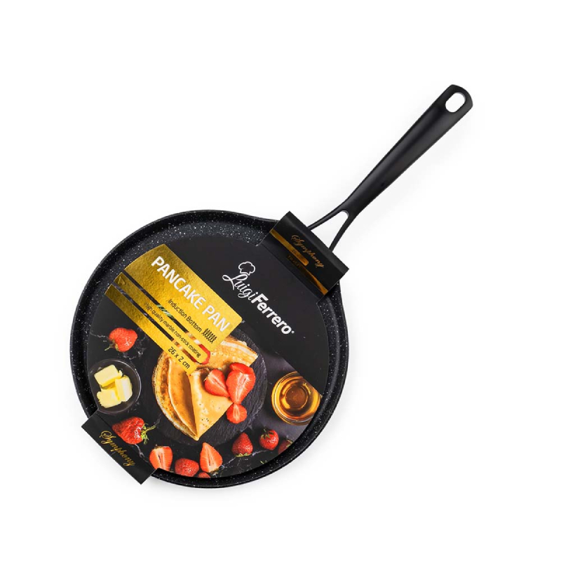 Открийте удоволствието от лесното и здравословно готвене с плиткия тиган LUIGI FERRERO Symphony. Благодарение на висококачествения кован алуминий и незалепващото покритие с мраморен ефект, този съд е идеален за бързи и вкусни рецепти, които не изискват много мазнина. Перфектен за палачинки, омлети, кесадили, зеленчуци или месо на бърза скара. Практичен избор за всеки, който обича леки и вкусни ястия.
