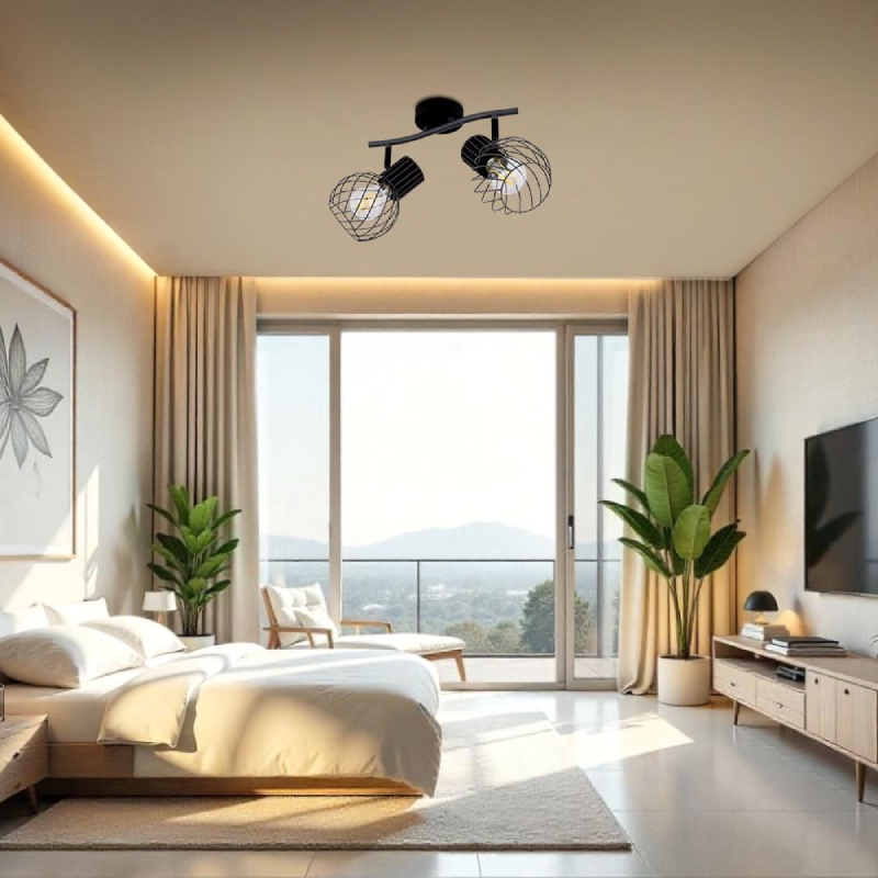 Спот 2 х Е14 от серията Maya на марката VIVALUX. Цвят: черен. Строгите прави линии и геометрични форми имат своите почитатели, но ако вие не сте сред тях, серията спотове Maya е точно за вас. Декоративните решетки на чашките с фасунги за Е14 са с овална форма, а самите чашки са подвижно монтирани върху кръгла основа и орнаментирани с допълнителни успоредни линии. Спотовете от серията са съвместими с всички LED филамент лампи VIVALUX с цокъл Е14 и са подходящо решение за осветление в кухни и коридори на съвременните жилища.