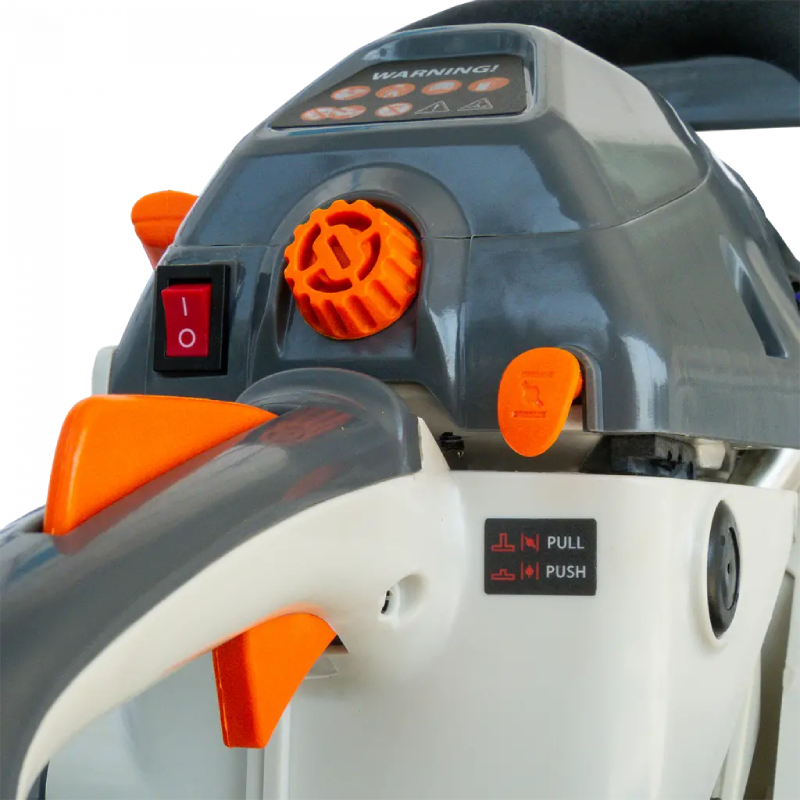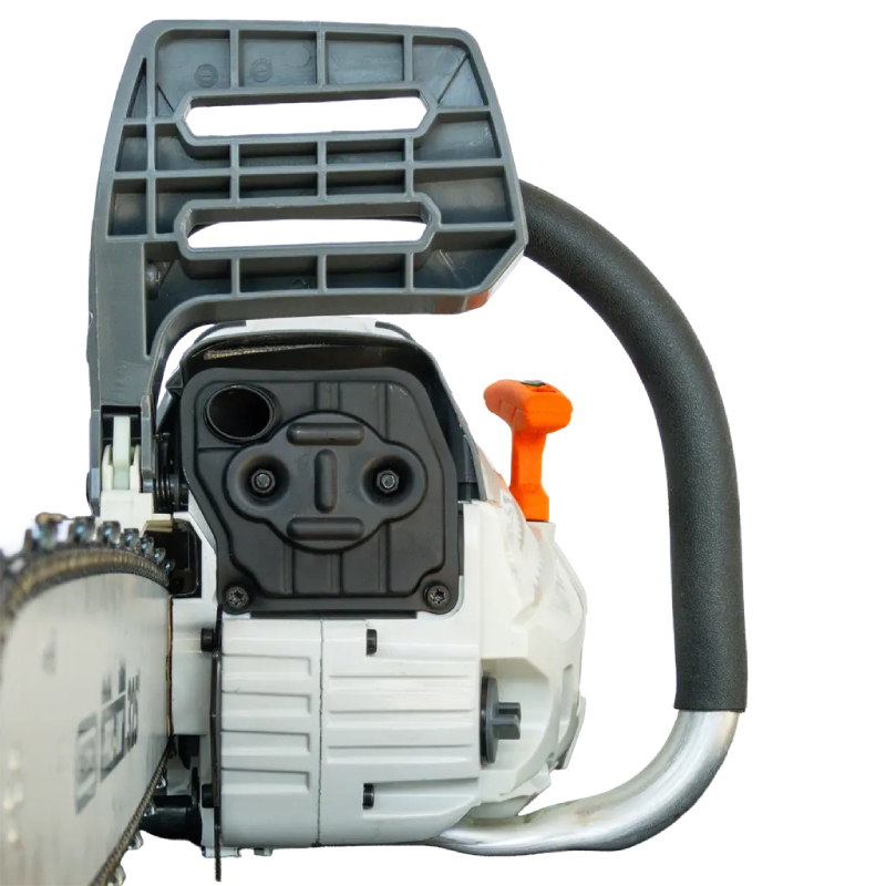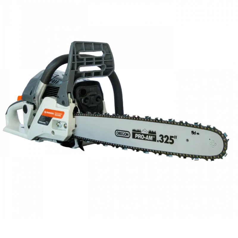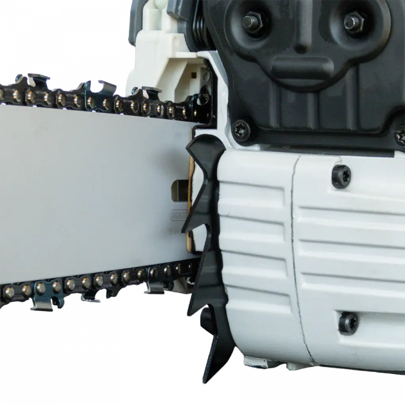Оборудвана е с верига и шина OREGON - марка, призната за качество и издръжливост в професионалния сегмент. Автоматичното смазване на веригата и ефективната антивибрационна система осигуряват комфорт при продължителна работа. Уредът разполага с усилена конструкция, ергономична ръкохватка и система за лесен старт.