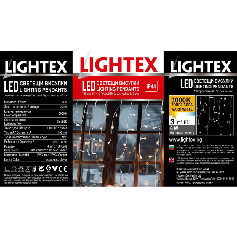 LED светещи висулки 36 бр. 180LED 6000 K IP44 4.2 x 0.6 м със захранващ кабел 220 V 722AM0022013 LIGHTEX.