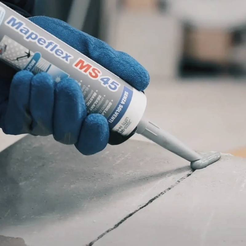 Mapeflex MS 45 на марката MAPEI представлява гъвкав, еднокомпонентен, тиксотропен, бързовтвърдяващ се хибриден уплътнител и лепило на основата на силикатни полимери. Притежава висока еластичност и деформируемост до 20%.