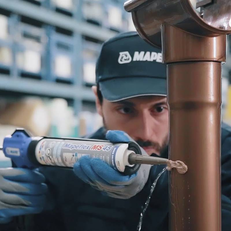 Mapeflex MS 45 е подходящ за лепене на повечето материали, срещани в строителството, включително и много видове пластмаси. Подходящ за влажни основи във вътрешни помещения и на открито. Mapeflex MS 45 е ефективен при спиране на малки течове.