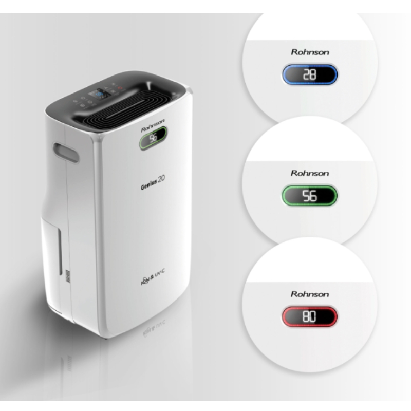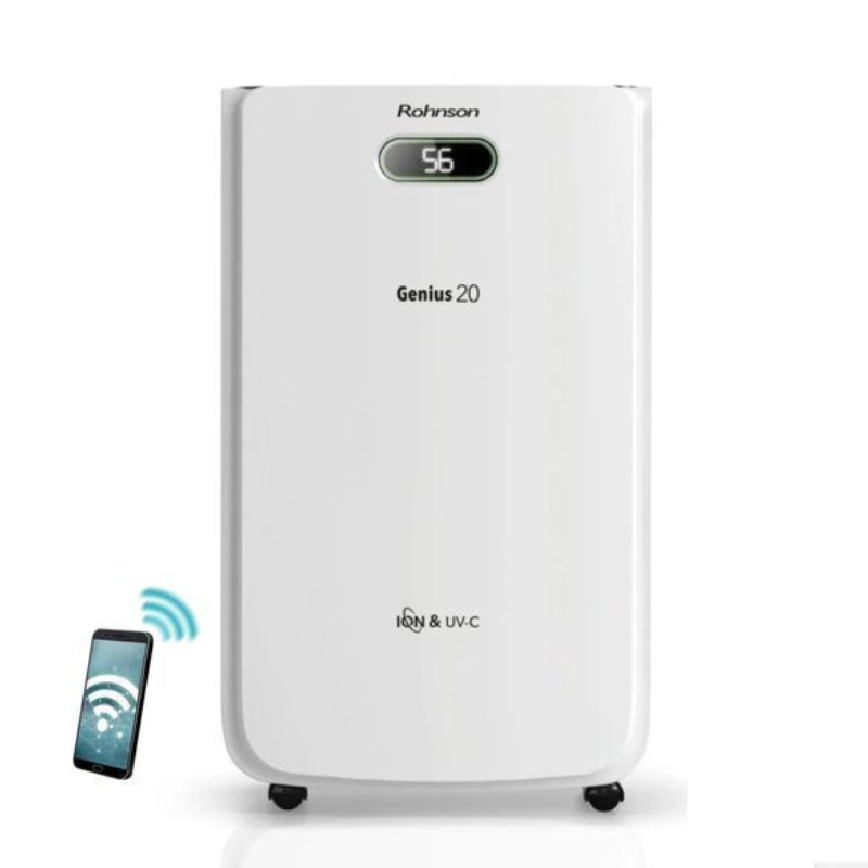 Rohnson R-95020 Genius е мощен влагоуловител с капацитет на изсушаване до 20 литра на 24 часа, подходящ за помещения до 120 кв.м. Той ефективно премахва излишната влага, намалява риска от мухъл и създава по-здравословна и комфортна среда у дома или в офиса.