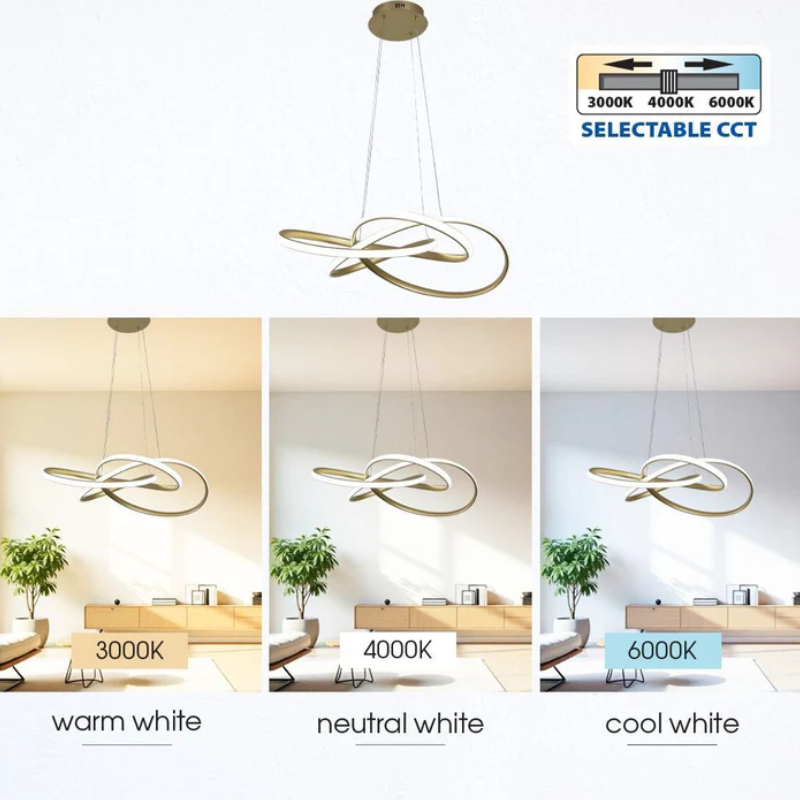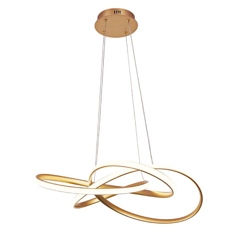 Полилеят MAREA LED 005174 е елегантен и артистичен осветителен елемент с модерен матиран златен корпус. Той се отличава с три преплитащи се овала, наподобяващи символа на безкрайността, които създават впечатляваща централна точка във всяко помещение. С вграден LED модул с мощност 60 W и светлинен поток 3653 lm, полилеят предлага ярка и равномерна светлина, която може да бъде настроена в три различни цветови температури - 3000 K, 4000 K и 6000 K.