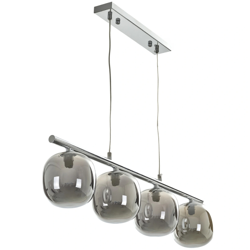 Пенделът KEEPER от EL BULGARIA се отличава със стилна хоризонтална метална основа в цвят хром, върху която са разположени четири сферични абажура от полупрозрачно стъкло. Съвременният дизайн съчетава метал и стъкло в елегантна композиция, подходяща за модерни и изискани интериори. С размери 730 мм широчина и регулируема височина до 1000 мм, моделът е отличен избор за осветление над трапезна маса, кухненски остров или в дневна зона.