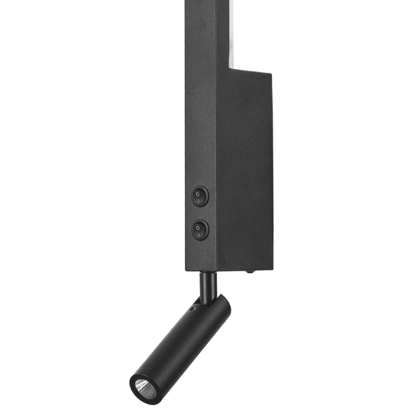 LED апликът VAHTY от EL BULGARIA е стилно и функционално решение за съвременно интериорно осветление. Моделът се отличава с издължена линейна форма в черен мат и подвижен спот в долната част, който позволява прецизно насочване на светлината.