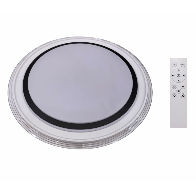 Моделът разполага с вграден LED източник 40 W с общ светлинен поток 3200 lm. Чрез дистанционното управление можете да регулирате цветната температура (CCT) от топла бяла 3000 K до студена дневна светлина 6500 K, както и да димирате светлината за създаване на желаната атмосфера. Плафонът е безопасен за вътрешна употреба (IP20, Клас I) и отговаря на европейските стандарти за качество и сигурност с гаранция 24 месеца.