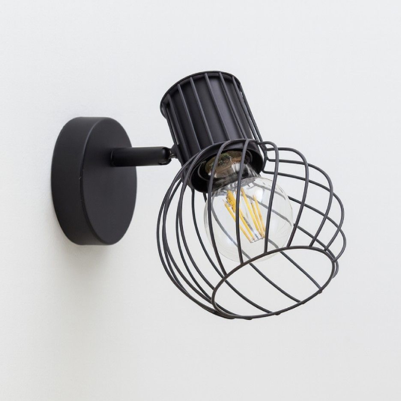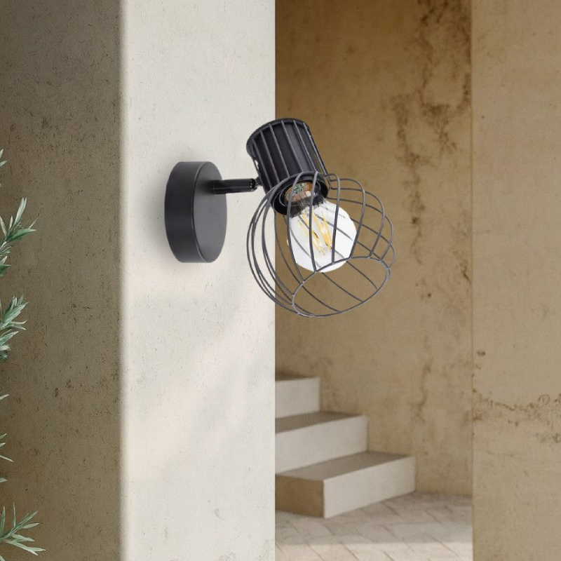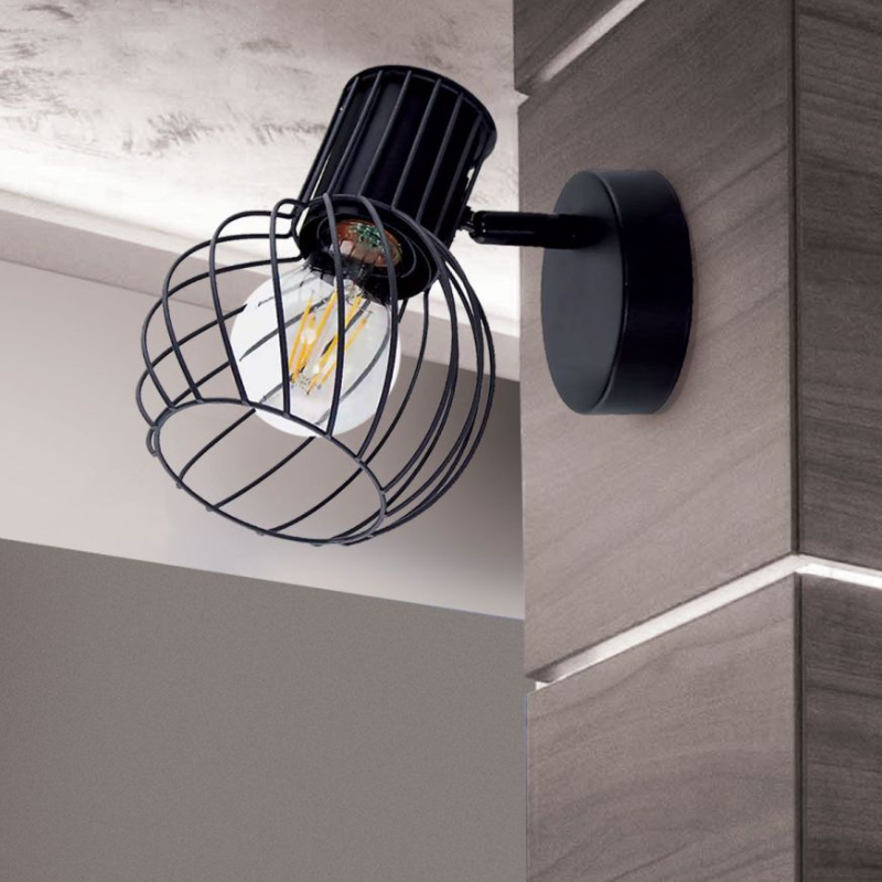Спот осветителното тяло MAYA SP777 от Vivalux впечатлява с индустриален характер и изчистен черен дизайн. Металната конструкция е допълнена от декоративна телена решетка тип "кошница", която обгръща крушката и придава отличителна визия. Моделът е подходящ избор за интериори в стил лофт или индустриален дизайн, особено в комбинация с декоративна филамент крушка.