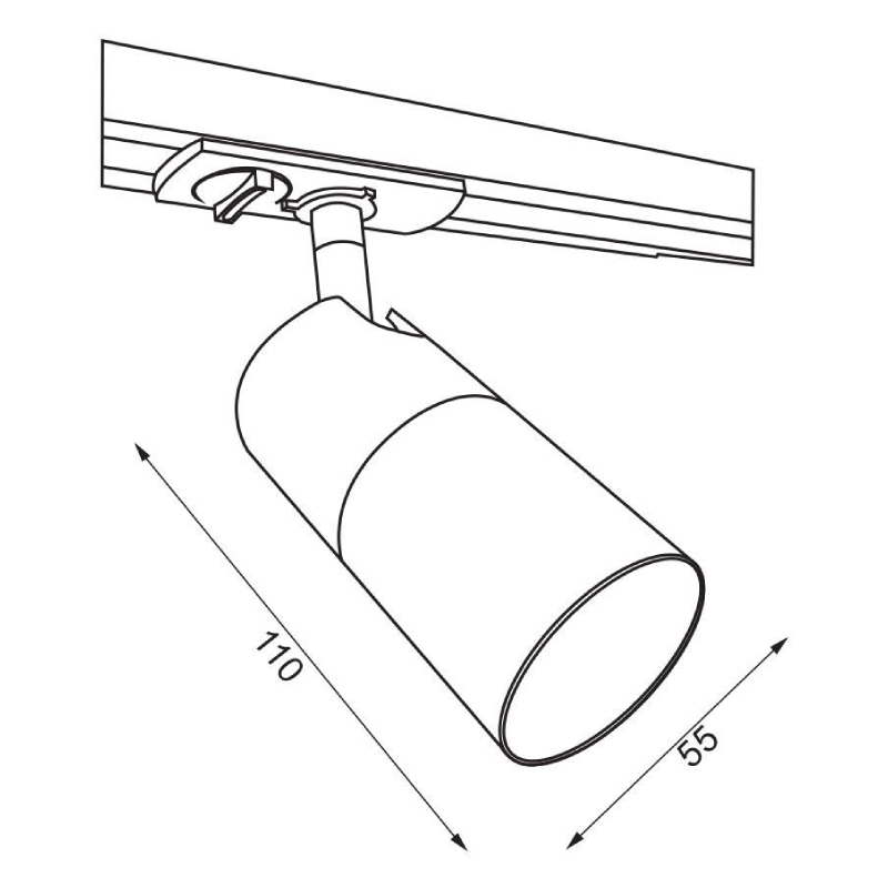 Моделът е предназначен за монтаж върху еднофазна релсова система, което позволява лесно позициониране и преместване по дължината на релсата според нуждите. Работи с един светлинен източник с цокъл GU10 и поддържа максимална мощност до 35 W. Подвижната глава дава възможност за прецизно насочване на светлината, което го прави подходящ за акцентно осветление в закрити помещения (IP20) и съответства на европейските стандарти.