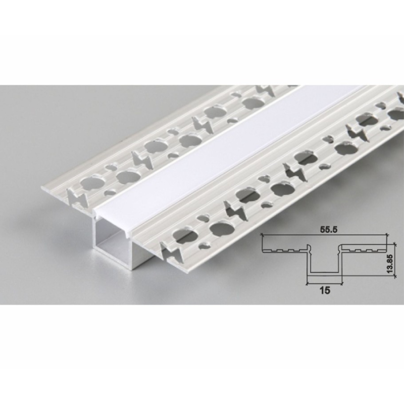 Алуминиевият профил 10300 от D-IL е специално проектиран за вграждане в гипсокартон и създаване на елегантно, скрито LED осветление. Благодарение на конструкцията тип "решетка" с перфорирани елементи, профилът може да бъде монтиран директно в гипсокартонената конструкция и шпаклован, което позволява постигане на напълно интегриран и минималистичен ефект в тавана или стената.