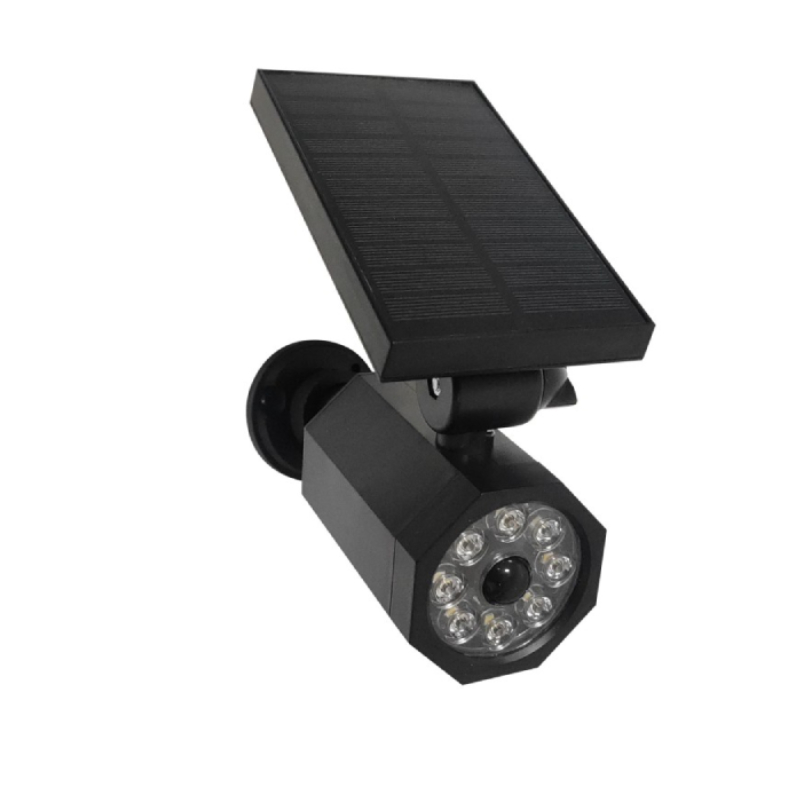 Иновативен соларен осветител с дизайн тип охранителна камера, предназначен за външна употреба и повишаване на сигурността около дома или бизнеса. Със студена светлина 6500 K и 8+1 LED SMD диода осигурява ясно и насочено осветление, а вградената мигаща червена светлина имитира работеща камера и действа възпиращо. Благодарение на соларното захранване и вградената батерия устройството работи автономно, без необходимост от електрическа мрежа.