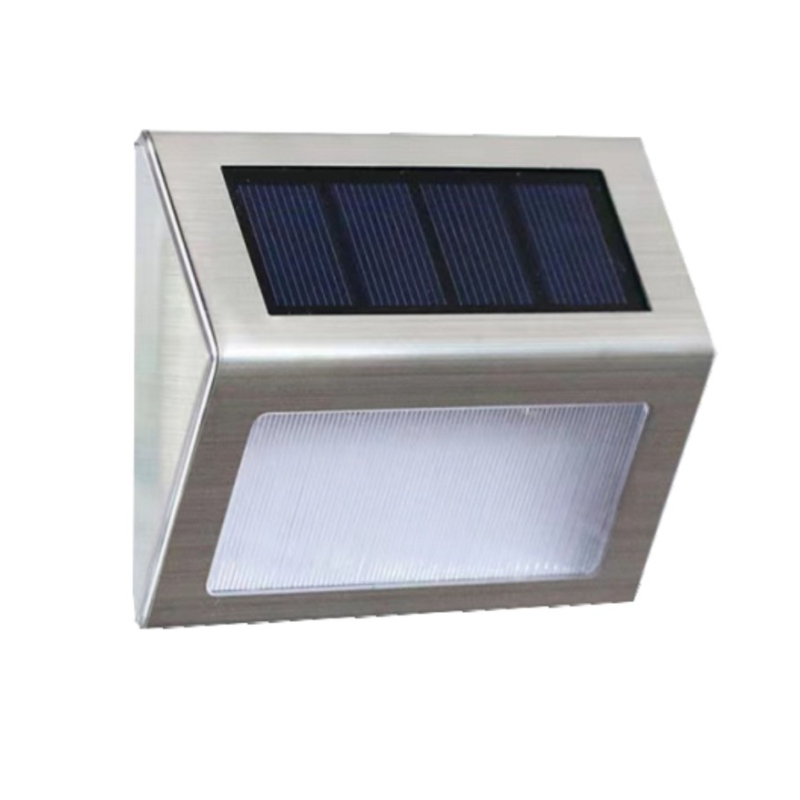 Компактен соларен аплик, предназначен за външен монтаж върху стени, огради и стъпала. Захранва се чрез вграден соларен панел, който зарежда акумулаторната батерия през деня, осигурявайки автоматично осветяване през нощта благодарение на сензор за здрач. Със студена светлина 6000 K и 180° ъгъл на осветяване лампата предлага практично и енергийно ефективно решение за дискретно външно осветление.