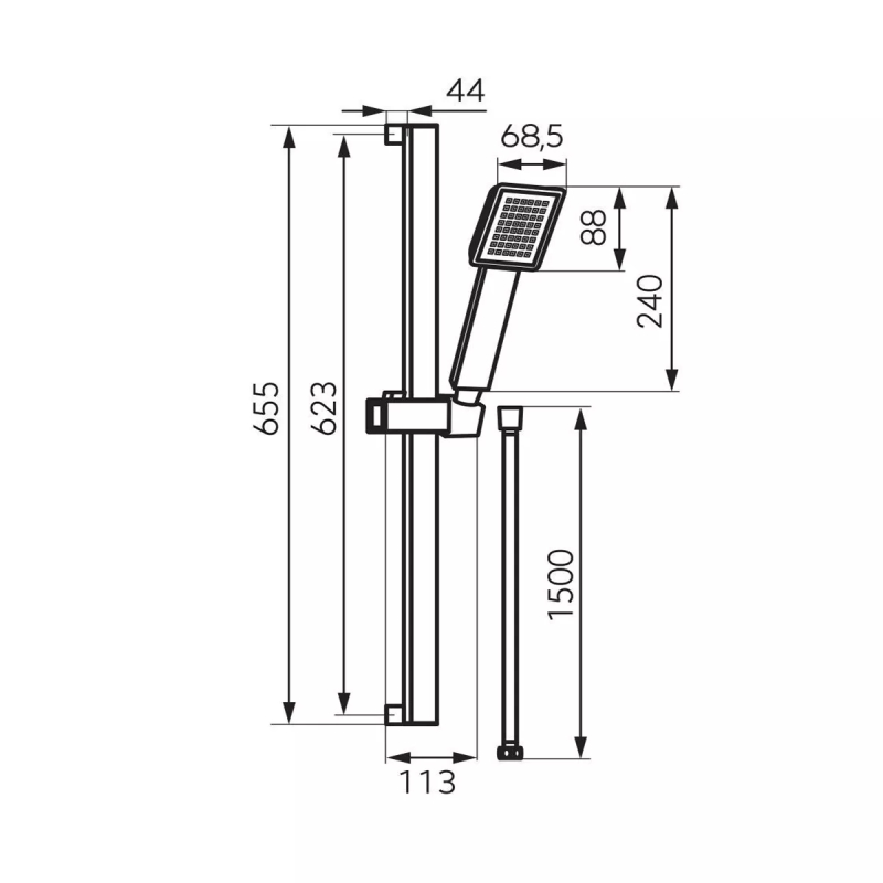 С височина 65.5 см и дължина на шлауха 150 см, системата предлага достатъчна гъвкавост и удобство при използване. Черното матово покритие придава модерно и елегантно излъчване, което се вписва отлично в съвременни интериорни решения.