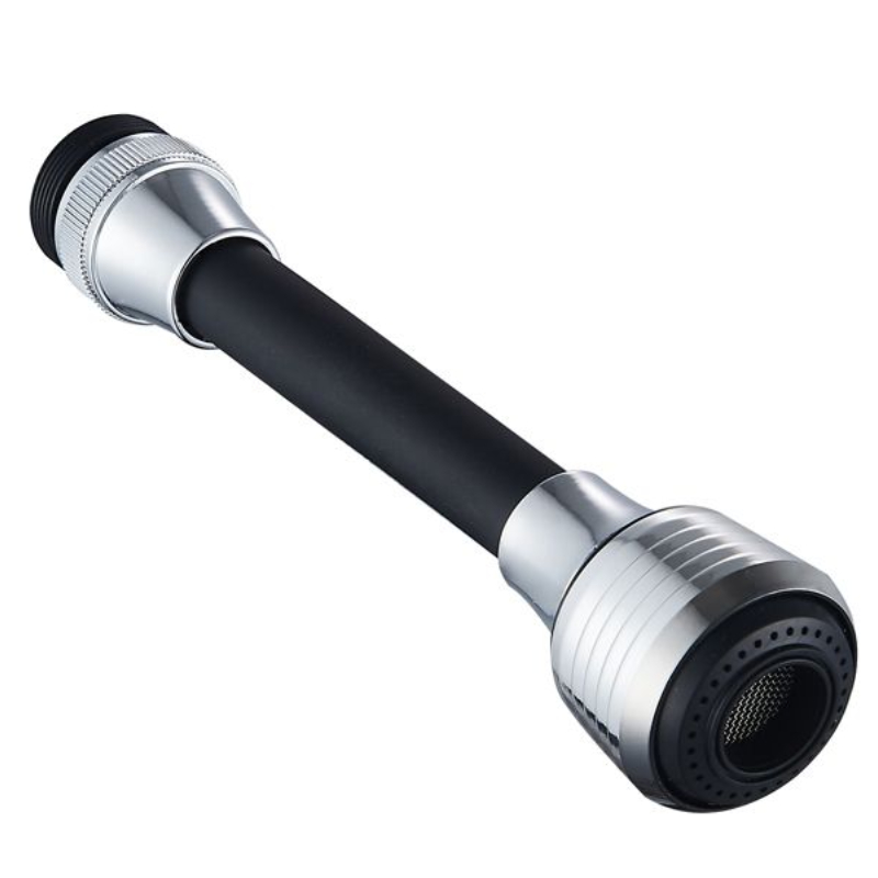 Моделът е оборудван с удължител, който позволява по-удобно насочване на водната струя и по-голяма гъвкавост при ползване. Черният цвят придава елегантен и модерен вид, който се съчетава лесно с различни стилове на смесители и обзавеждане в банята или кухнята.