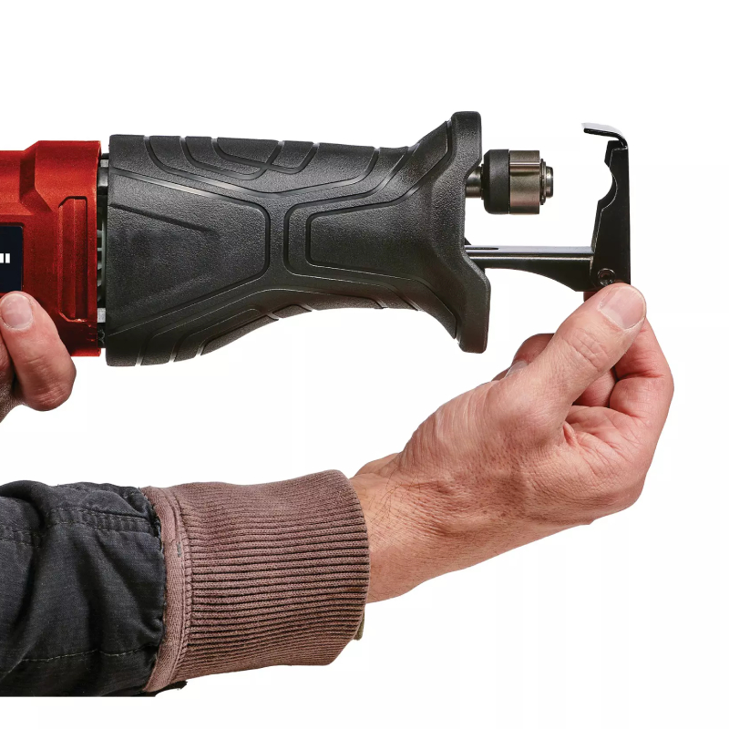 Einhell TC-AP 690 E е мощен електрически саблен трион с 690 W мотор, предназначен за универсално рязане на дърво, пластмаса и различни метали. Благодарение на електронния контрол на скоростта, инструментът позволява адаптиране на оборотите според материала за по-прецизна и безопасна работа. С максимални обороти до 2800 об./мин и ход на ножа 20 мм, моделът осигурява ефективно и контролирано рязане.